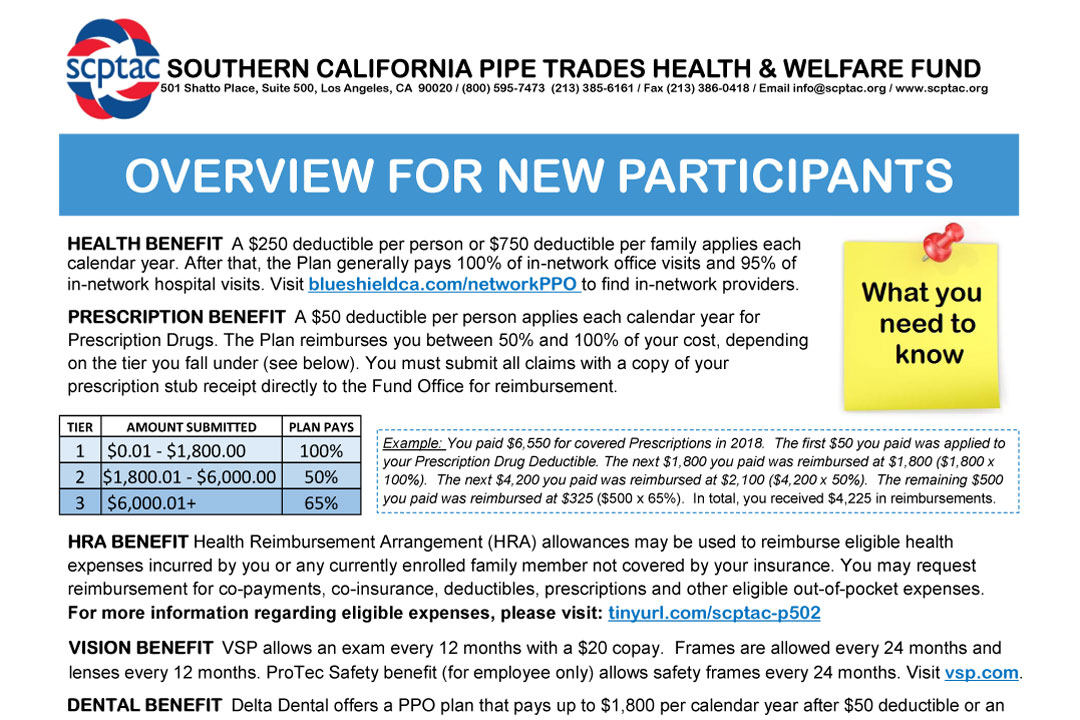New Health & Welfare Fund participants can refer to this document that provides an overview on available Plan benefits and forms.